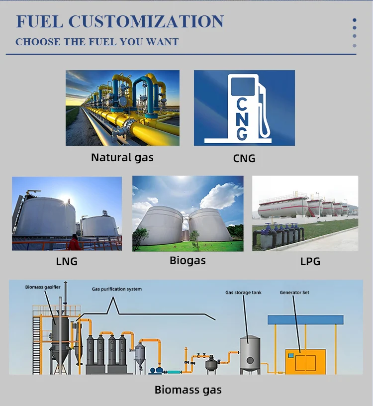 Built to handle a variety of fuels, the generator provides cost-effective and eco-friendly operations, suitable for businesses utilizing natural gas, biogas, or liquefied petroleum gas.