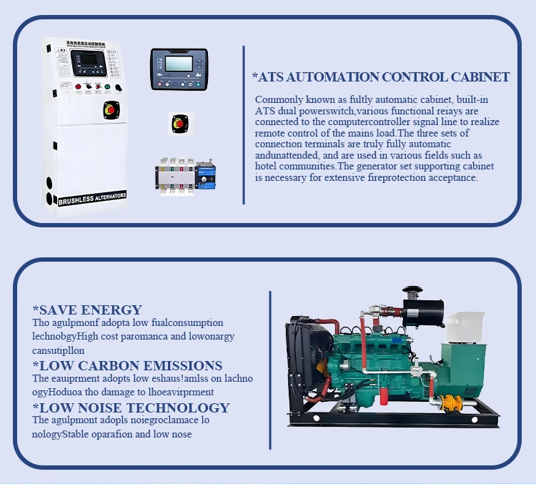 The generator can be set up with either natural or turbocharger air intake systems. It supports different ignition systems and engine brands like Shangchai, Jichai, Wudong, Yangdong, etc., making it flexible and adaptable for various applications and environments.